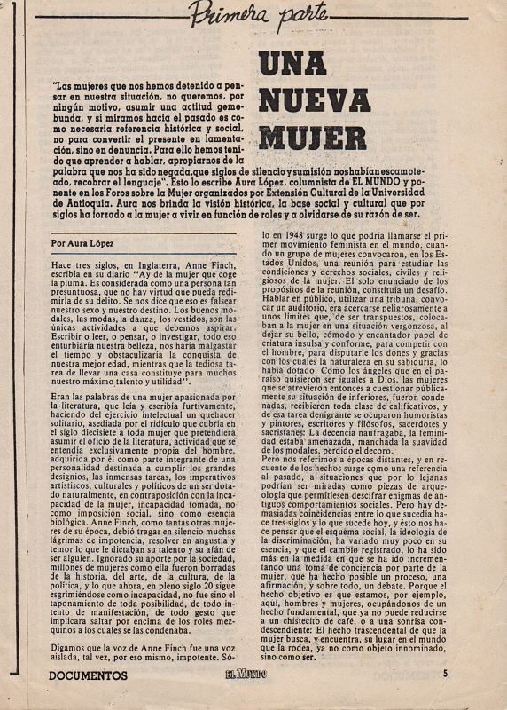 Aura María López Posada nació el 4 de febrero de 1933 en Venecia, Antioquia, y siendo una bebé fue llevada a Yarumal. Allí transcurrió su infancia y sus primeros años escolares. Desde muy temprano su padre le comenzó a llevar libros como “Juan Grillín”. Esa fue su entrada al maravilloso mundo de los libros, los escritores y librerías.