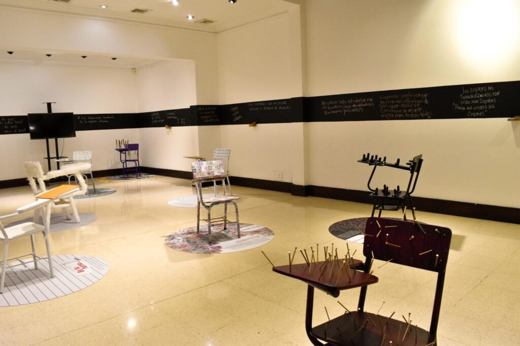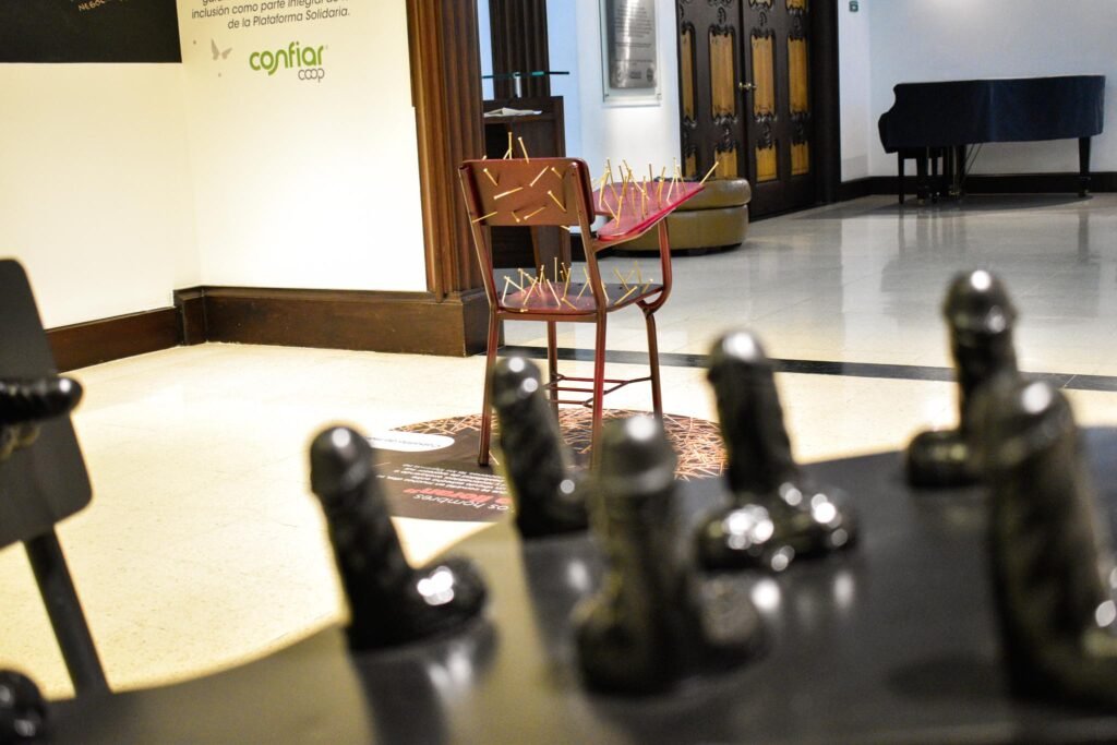 Jaque al rey, otras maneras de ser hombre es una instalación que invita a recorrer 10 sillas escolares intervenidas que proponen una problematización sobre 10 estereotipos del universo masculino. “Yo quiero platear una búsqueda y un recorrido sobre las reflexiones de un hombre sobre las violencias patriarcales, que son en gran medida sufridas por las mujeres, pero que también me han tocado a mí como hombre homosexual. Claramente me han tocado de forma distinta, en diferente proporción, porque al ser hombre yo tengo algunos privilegios. Entonces hago esta instalación para interpelar a hombres y mujeres para que cambiemos el libreto y busquemos formas cotidianas de transformar esta relación desigual para, como dice la Política de Género de Confiar, lograr ese sueño de estar Entre Iguales”, aclara Andrés.