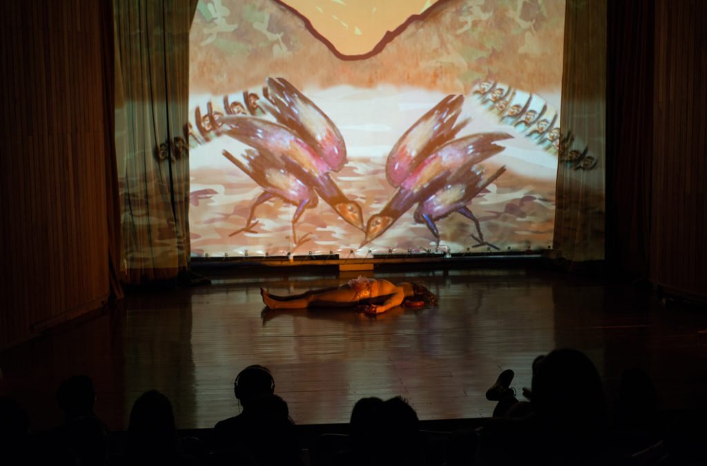 Débora Arango aparece en la escena con su obra Retrato de Colombia; luego, la pintura toma vida, Gladis se revuelca por el piso, los buitres proyectados en la pared comienzan a picotearla, la devoran. Ella y sus compañeras se acercaron al arte, propusieron lecturas particulares desde sus contextos y formas de ver el mundo, así nacieron los números del cabaret.