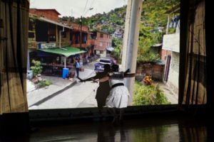 Jaqueline llevó a escena el tema del feminicidio. De fondo, una guasca popular que narra descaradamente los golpes sistemáticos de un marido contra su esposa y cómo la asesina finalmente. A ella la vemos también en la pantalla: se va tragando esas rosas que tantas veces le regalaron para pedirle perdón y que se convierten en un charco de sangre. Adela baila salsa mientras, por la pantalla, viajamos por las calles de algún barrio de Medellín. Se oyen las balas, los titulares de prensa, la guerra se tomó ese territorio y ella también fue víctima.